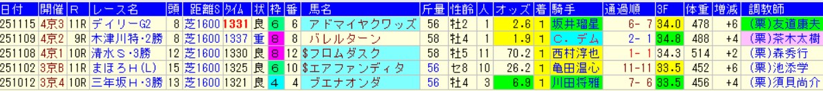 ガイアフォースの場合は、京都よりも東京に適性がある感じ。すべてがうまくいった富士S(G2)より、さらに前進するとは思わない。
