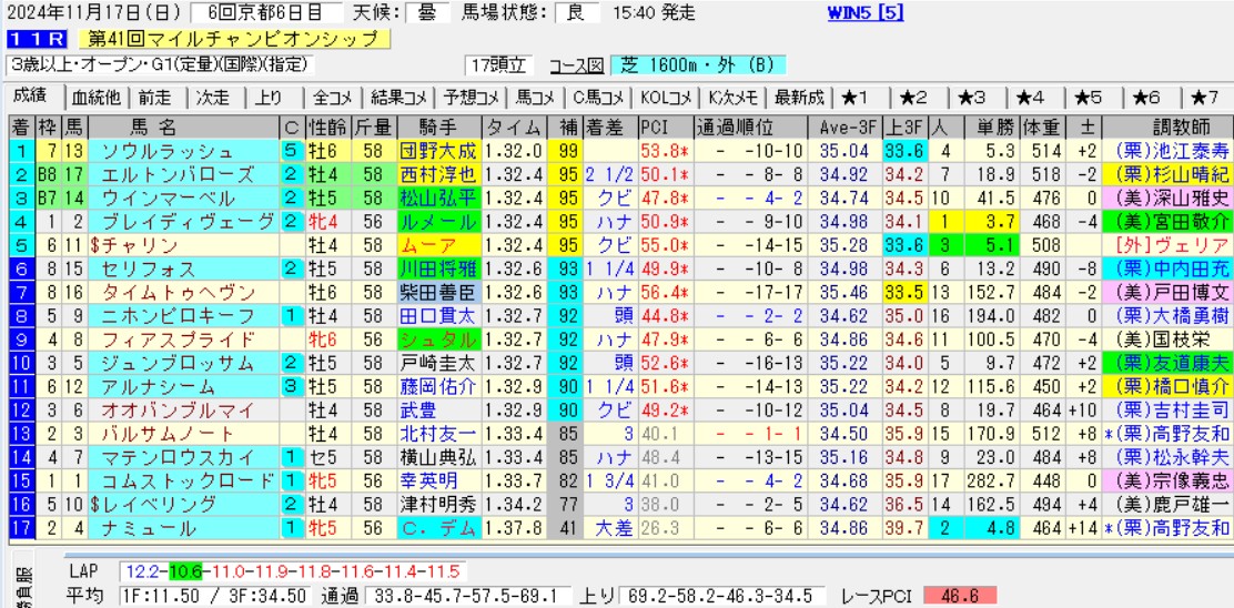 京都11RマイルCS(G1)芝1600