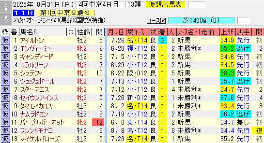 これまでは大抵小倉でデビューした馬が勝っていたけど、中京開催なら適性の分かっている中京組が有利になりそう。さすがに小倉の芝1200mと中京の芝1400mはリンクしない気がする。
