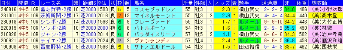 前走6~9着 0- 1- 0- 6/ 7 0.0%