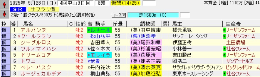 サートゥルナーリア 0- 0- 0- 9/ 9 0.0%