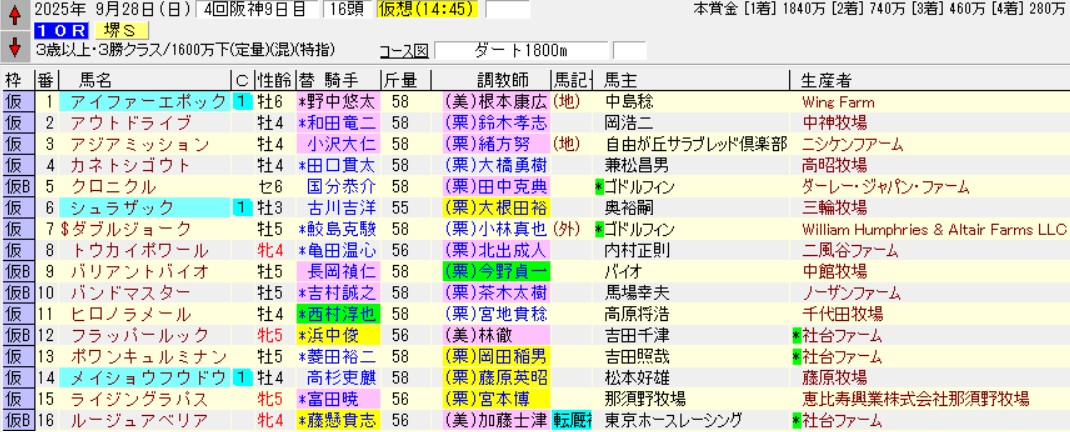 今週の重賞はスプリンターズS(G1)のみのため、データや展望記事の作成は比較的楽でいいが、問題はその他の4レース。昨年は単勝1.2倍のエンブロイダリーが、いきなり飛んだように最後まで気の抜けない対象レースが続く。