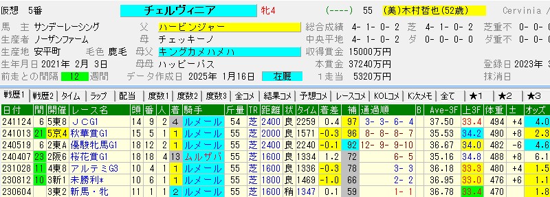 では、チェルヴィニアの信頼度はどうだろうか。世代レベルがどうであれ、本レース制覇時にまだG1勝ちが秋華賞(G1)のみだったクロノジェネシス、オークス(G1)のみだったラヴズオンリーユーに対し、オークスと秋華賞のどちらも優勝しているチェルヴィニアなら実績は申し分ないか。