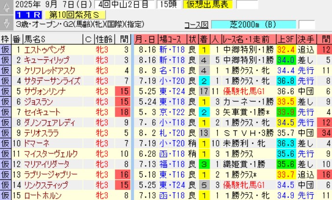 中山11R紫苑S(G2)芝2000