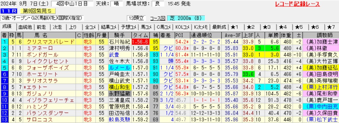 たまにビックリするような追い込みがハマる年もあるが、基本は前残りが多発する中山コース。特に昨秋なんて本当に酷かった。バカみたいなレコードが頻発して行ったままのレースばっか。2番手のクリスマスパレードがレコードを更新して勝った。