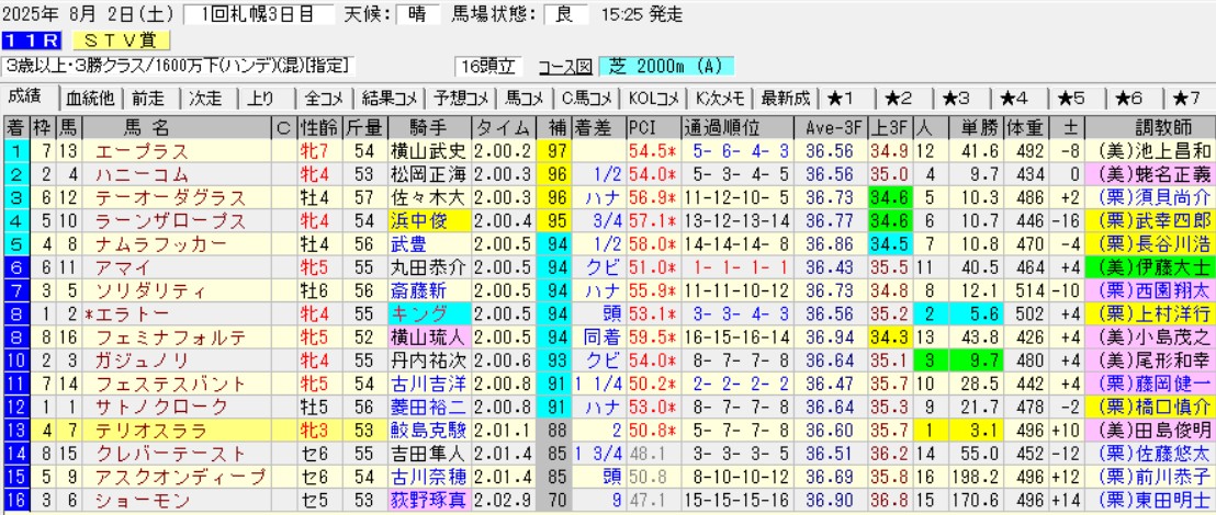 それを考えれば同じくらい走れば勝ち負けも視野に入る。ただ長期休養明けのSTV賞(3勝)で思いもよらぬ大敗を喫してしまったのはどうか。