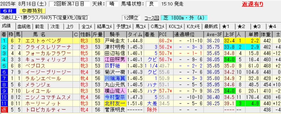 あ、ゴ三浦師匠から解き放たれたエストゥペンダは、前走ですごい脚使ってたなあ。完全に前残りの超スローをお構いなしに追い込んだ。でもなあ前残りする馬を狙いたいんだよなあ。