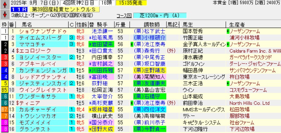 田口貫太は評価していないが、むしろ中山のセプテンバーS(3勝)をやめて格上挑戦を選択してきた森ハゲの手腕が不気味である。この人ただのハゲじゃなく、どうやれば馬主が儲かるかを誠実に考えてくれるタイプ。勝算なくしてこんなところに使ってくるはずがない。