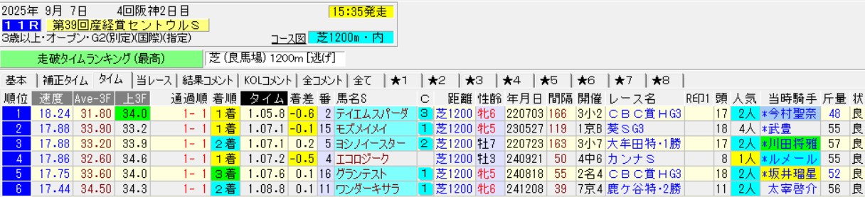 芝1200mのレースはなかったものの、先行馬は残っている。これが芝1200ならもっと残れるはず。とにかく行かなきゃ話にならないはずだ。