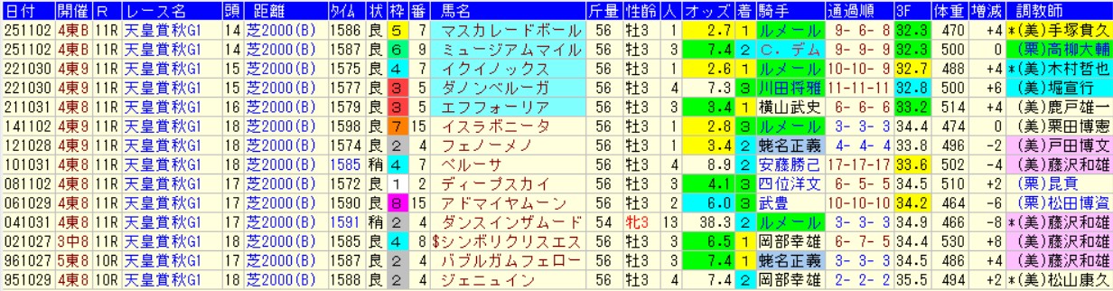 過去の天皇賞・秋でL4の速い順