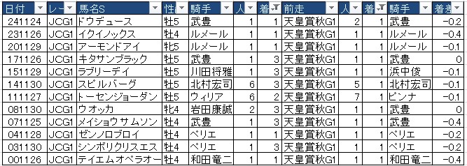 天皇賞・秋を優勝した馬のジャパンC成績