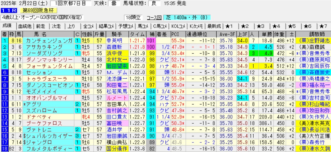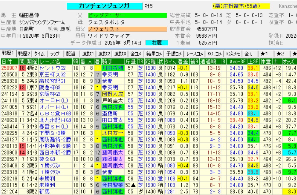 少し悩ましいのはカンチェンジュンガの扱いかなあ。中山芝1200もまた典型的な逃げ馬天国の馬場とコース。さすがにハマり過ぎた今回と同じような追い込みが決まるとも思えないよなあ。