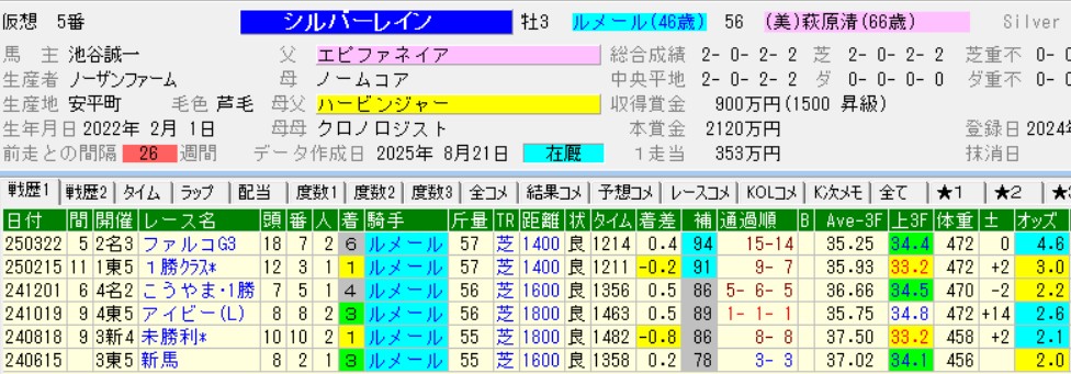 そんな母の初年度産駒がシルバーレインで、一つ下の妹ドリームコアは6月東京でデビュー勝ちを決めている。
