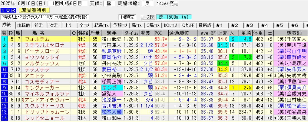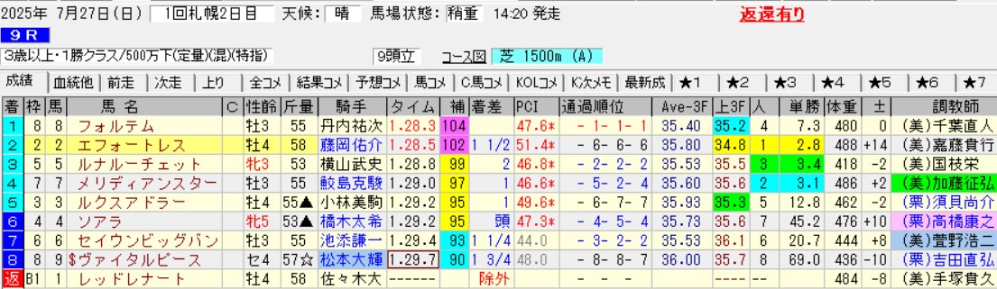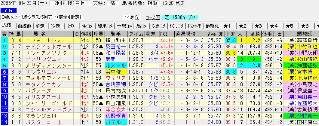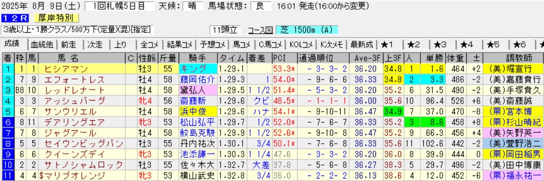 ヒシアマンの推しポイントは、厚岸特別で1馬身差2着エフォートレスが次走で3馬身差の楽勝をしただけでなく、本馬がヒシアマンの前に敗れた相手フォルテムが、2勝クラスも楽勝したこと。