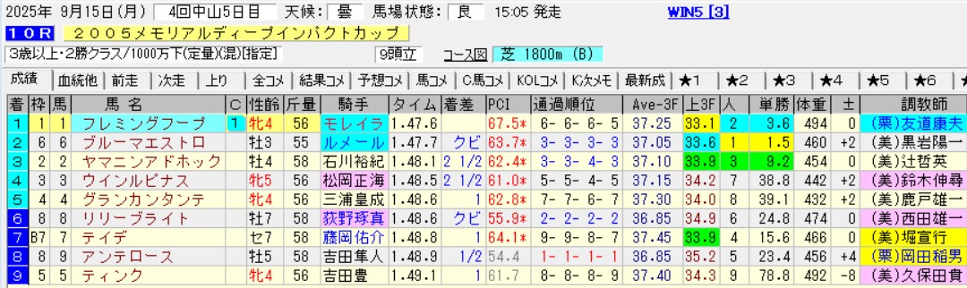 9月のWIN5も今週を入れて残すところ2回。10月からは例の土曜WIN5もスタートする。