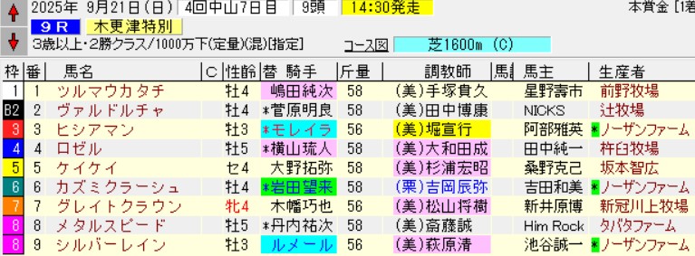 中山09R木更津特別(2勝)芝1600