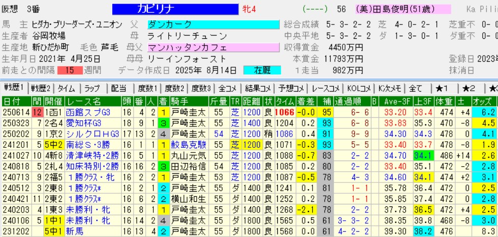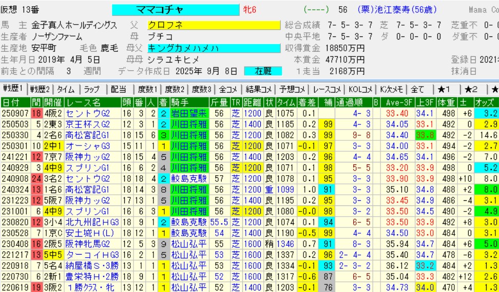 前走のセントウルS(G2)は、ママコチャどころかカンチェンジュンガにも敗れて3着だったが、戦前の状態に自信満々のコメントを出していた陣営から、レース後に「状態はあまりいいとは思えなかった」「先生とも目標は次と話していました」「本番前のひと叩きとしては良かった」という競馬ファンを馬鹿にしたような裏切りコメントも出た。