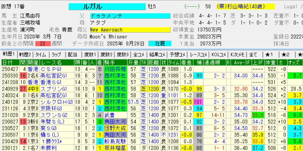 ただ短距離路線に関しては別。実際にルガルがG1を勝って低評価に抗った。