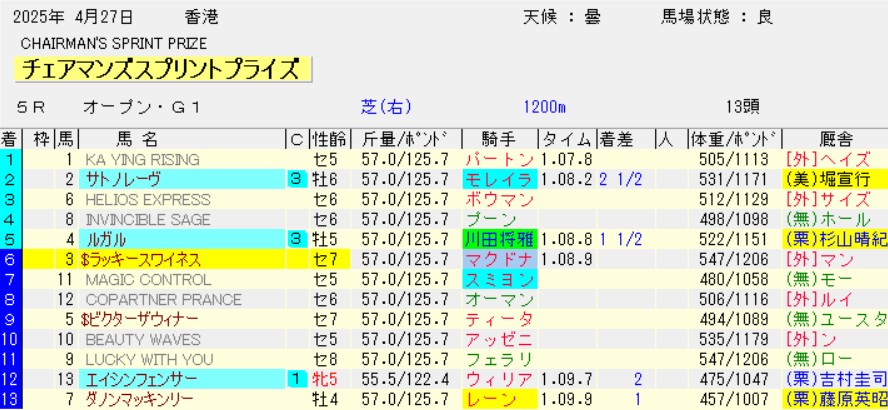 かといって、ホームのチェアマンズスプリントですら、日本から遠征したアウェーのサトノレーヴ、ルガルに負けているようでは恐るるに足らずだ。
