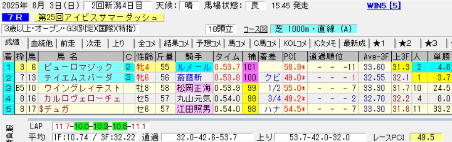 レースを掻き回したピューロマジックは今年も出走するが、前走のアイビスSD(G3)で控えて差し切るトライアルに見事成功。ここまでやったなら今年も逃げることはほぼない。つまり、昨年のような展開にはならないということだ。