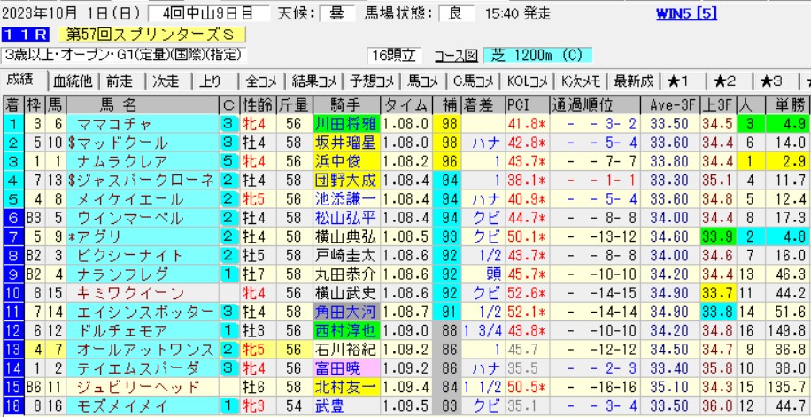ちなみに昨年のスプリンターズS週はこんな結果。出だしから単勝1.2倍に支持されたルメールのエンブロイダリーが飛び、最後も9番人気ルガルの勝利と荒れに荒れた。