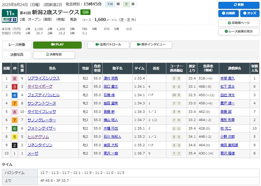 新潟11R新潟2歳S(G3)芝1600