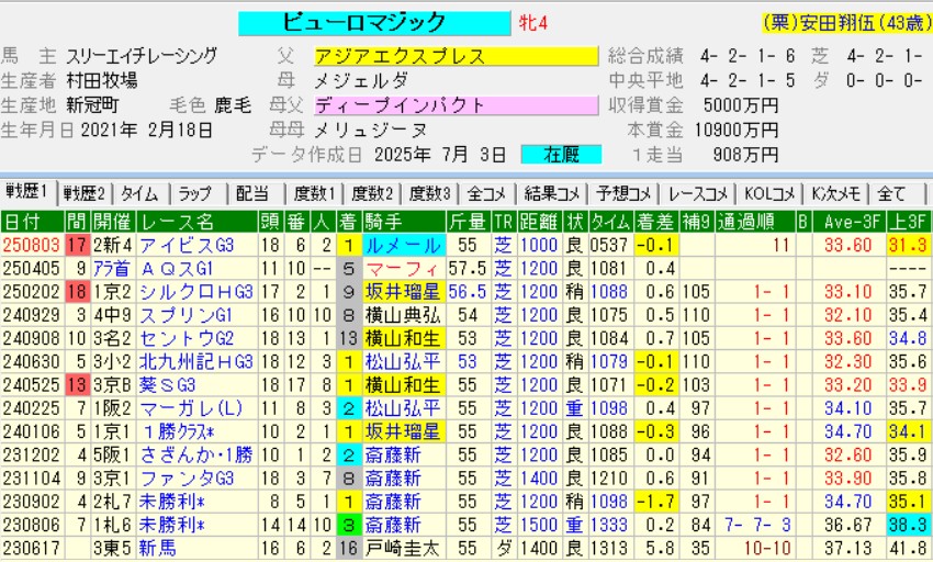 それはともかくピューロマジックの快勝が本物なら、この秋のスプリント戦でこの馬に敵う馬はいないようにすら思えてしまった。