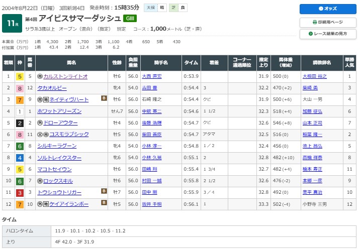 新潟07Rアイビスサマーダッシュ(G3)芝1000