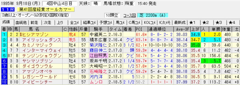 もう競馬歴30年以上になるけど、唯一現場まで観に行ったのは当時大好きだったヒシアマゾンが目当てだった1995年。台風の影響で日曜から月曜に代替開催になったけど、まだ社会人じゃなくて学生だったから関係なし。