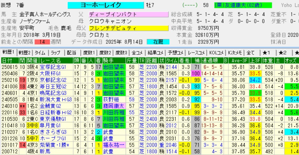思い切り狙った宝塚記念で不可解な大敗を喫した。非根幹距離で馬場も稍重なら悪くても掲示板は来るだろうと期待していたにもかかわらずである。キャリアの最低着順が7着だった馬にしては崩れ過ぎの印象が残る。