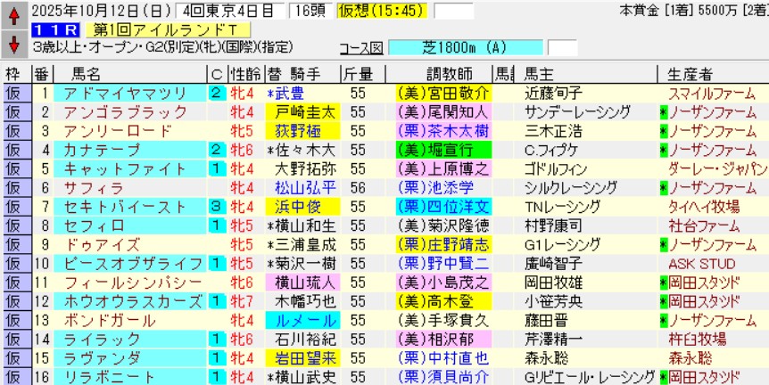 これらに加えて武豊アドマイヤマツリ、ルメールのボンドガール、微妙にブレイク中のディープインパクト産駒ホウオウラスカーズも参戦。点数を広げるなら全部押さえたいところだが……。