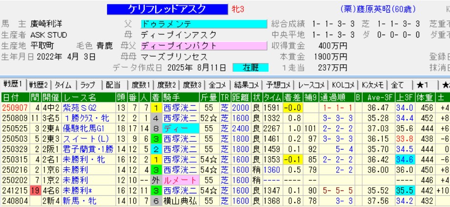 かといってたかが1勝クラスですら勝てないケリフレッドアスクの激走は盲点。