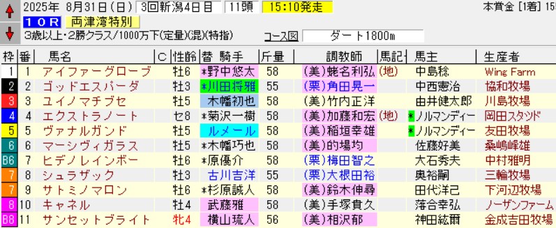 新潟10R両津湾特別(2勝)ダ1800