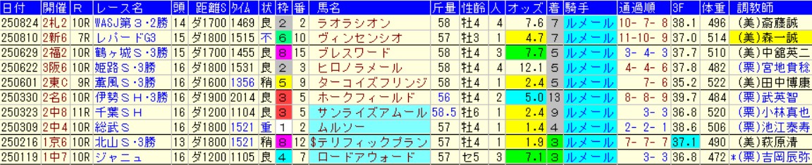 ただそれって芝なんだよね。ヴァナルガンドの実力上位に疑いはないけれど、【2.6.2.3】と2着の多過ぎるWIN5に向かないタイプ。さらには芝と違ってダートのルメールは信頼度が激減することにある。