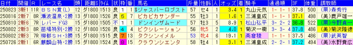 かといって無闇矢鱈に点数を無駄にしてもしょうがないのも当然。今夏の新潟ダ1800条件を抽出すると以下。こんなんもう行ったままやんけ。