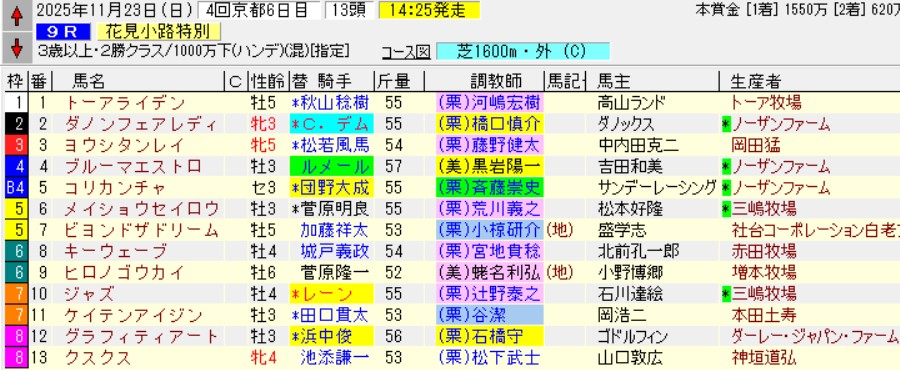 そんな話はさておき、花見小路特別の予想に戻る。
