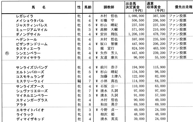 しかし結局ステインガーグラスが回避を表明し、後は賞金の勝負。さらにはチンドリことビザンチンドリームがフレグモーネで回避するアクシデントもあったが、繰り上がったのはアラタ。ライラックさんはほぼ絶望的ですな。