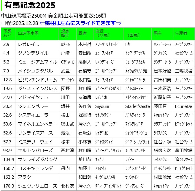 中山11R有馬記念(G1)芝2500