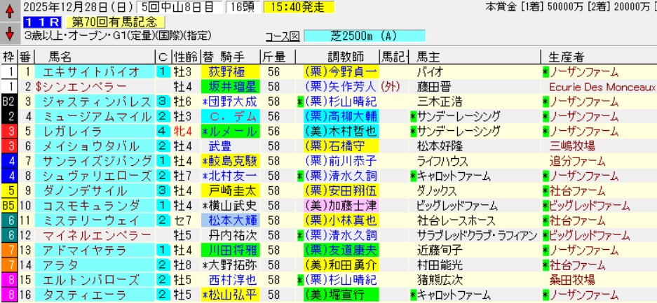 中山11R有馬記念(G1)芝2500