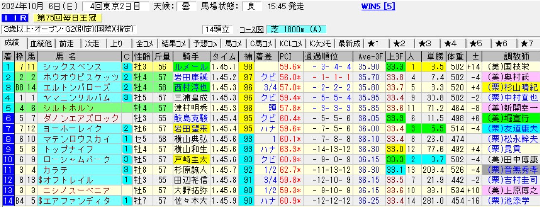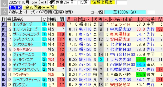 また、堅い毎日王冠の歴史もおそらく1番人気の本馬を後押しする。