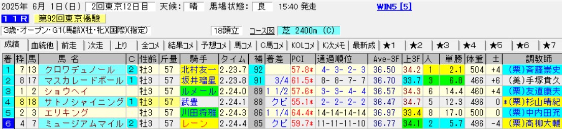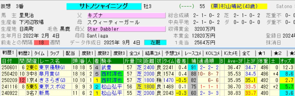 登録馬の顔触れは京都大賞典(G2)より面白そうだけど、最注目は武豊が騎乗するサトノシャイニング。松山弘平から西村淳也、そしてダービーは武豊。あの前残り馬場で2番手の積極策は理に適っていたはずだが、力の抜けているクロワデュノールやマスカレードボールはともかく、ショウヘイに交わされたのは、なかなかショッキングな敗戦だった。