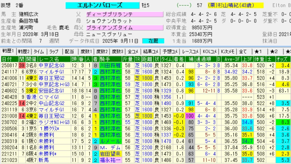 昨年の2着馬であり、天皇賞・秋(G1)ではドウデュースの3着に善戦。クソスローの前残りが大好物の馬である。