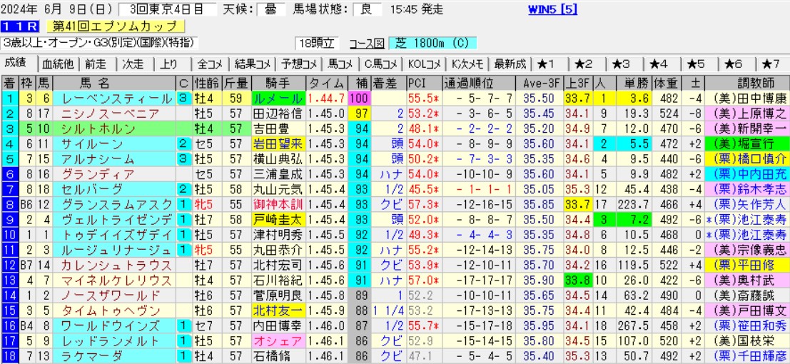 あと、注意したいのは東京の芝1800mにはエキスパートが存在する点。堅いレースといっても、昨年の覇者シックスペンス、2年前の覇者エルトンバローズ、そして59キロを背負ってエプソムC(G3)を楽勝したレーベンスティールもいれば、開幕週の前残り馬場で持ち味が生きるホウオウビスケッツも出走を予定している。