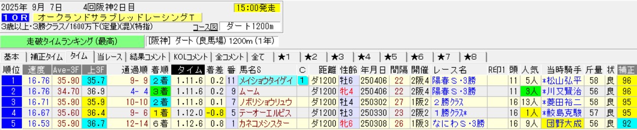 阪神10RオークランドTRT(3勝)ダ1200
