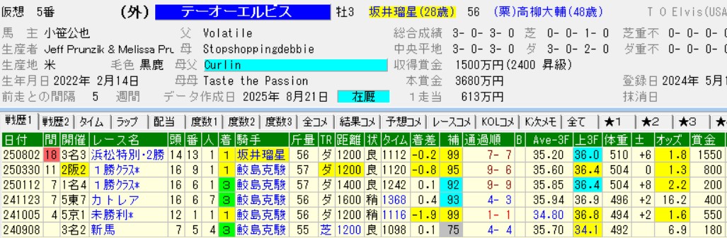ダートのは年長馬の層が厚いため、3勝クラスで躓く3歳馬は珍しくないのだが、テーオーエルビスに関しては通過点と考える。