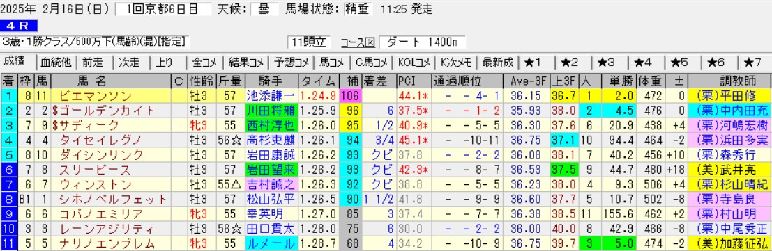 結果的に「馬が強くて勝ってしまった」とはいえ、調教師からは「ずっと外を回る形」「ちょっとため過ぎかな」と不満のコメント。ゴール前の手応えは余裕が残っていたから大楽勝ではあるけども、騎手としての騎乗はミスといっていい。