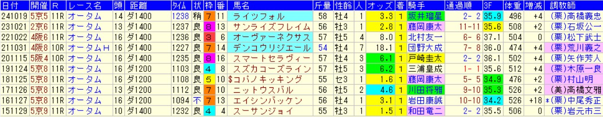 これに加えて距離も今年と同じダ1400に限定すれば、1番人気しか勝っていない。予想をする前にこれくらいは下調べしておきたいところだ。