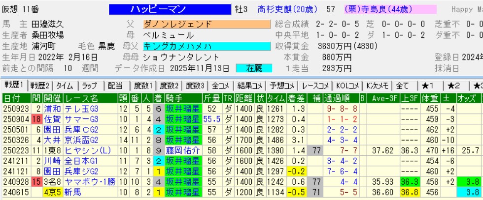 この馬が勝ったら高配トリガー引けるだろうから、名前と同じハッピーマンになれるかもしれない。ガシマンが東京でいない隙にチャンスをモノにしてみろ高杉!