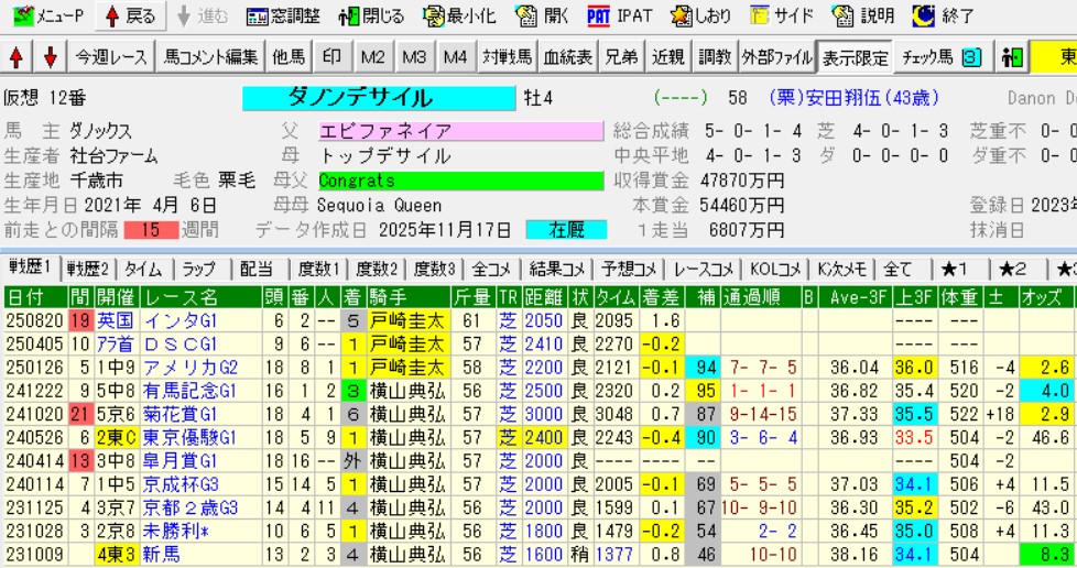 日本の馬場ほど高速ではないにせよ、欧州との中間くらいに考えれば、ゴリアットより数段上の馬場適性。ドゥレッツァ、チェルヴィニア、シンエンペラーといった日本馬に先着した。