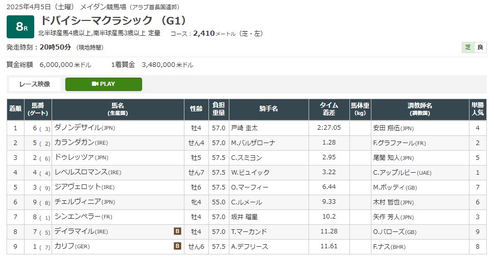 というのもドバイシーマクラシック(G1)は、日本馬でも結果を残しているレースだからだ。
